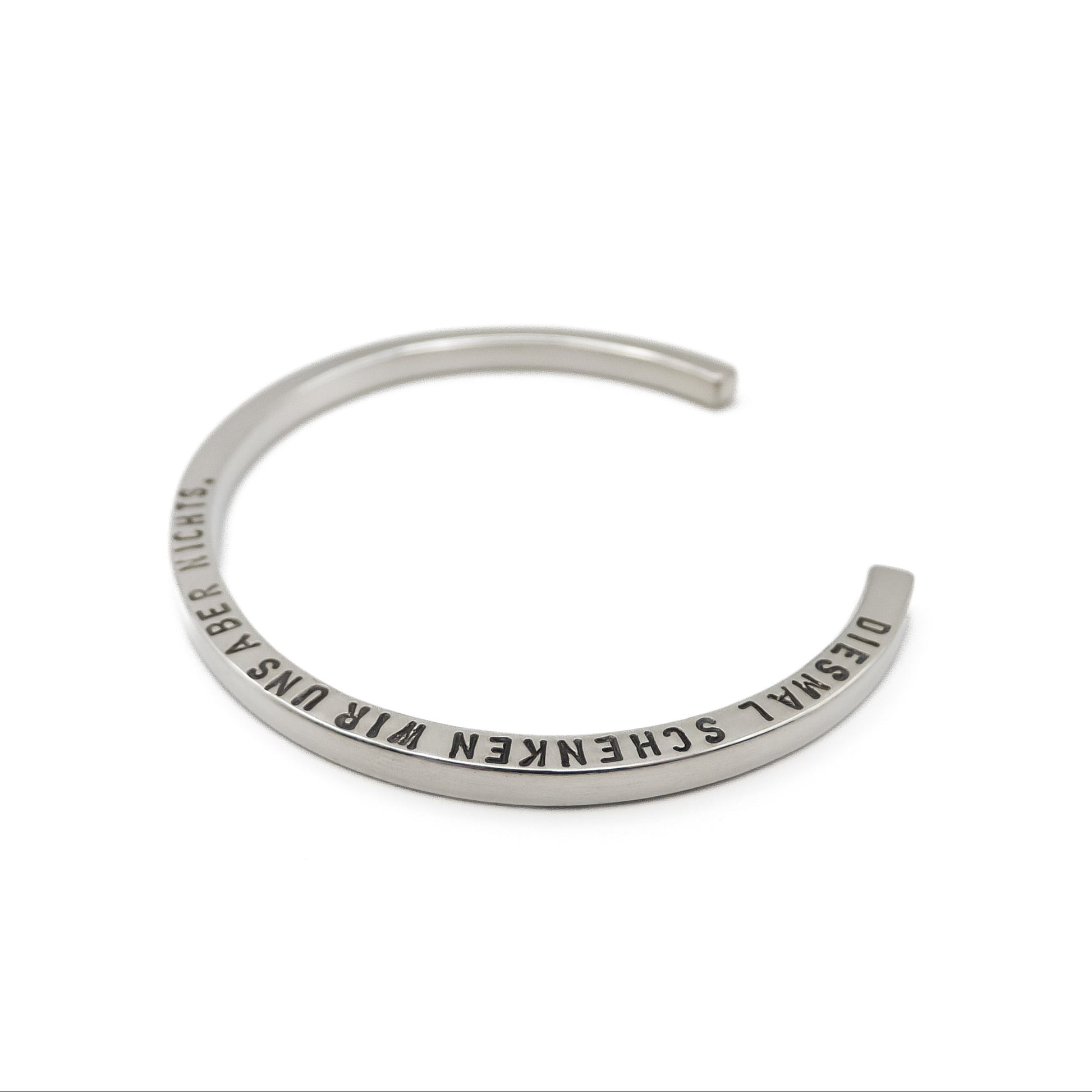 Wenn du den silbernen Armreif verschenken möchtest, gib uns bitte einen kurzen Hinweis, ob das Handgelenk eher zart, mittel oder kräftig ist (Damen- oder Herrengröße). So können wir den Armreif aus 925 Silber ideal vorbereiten und anpassen.
