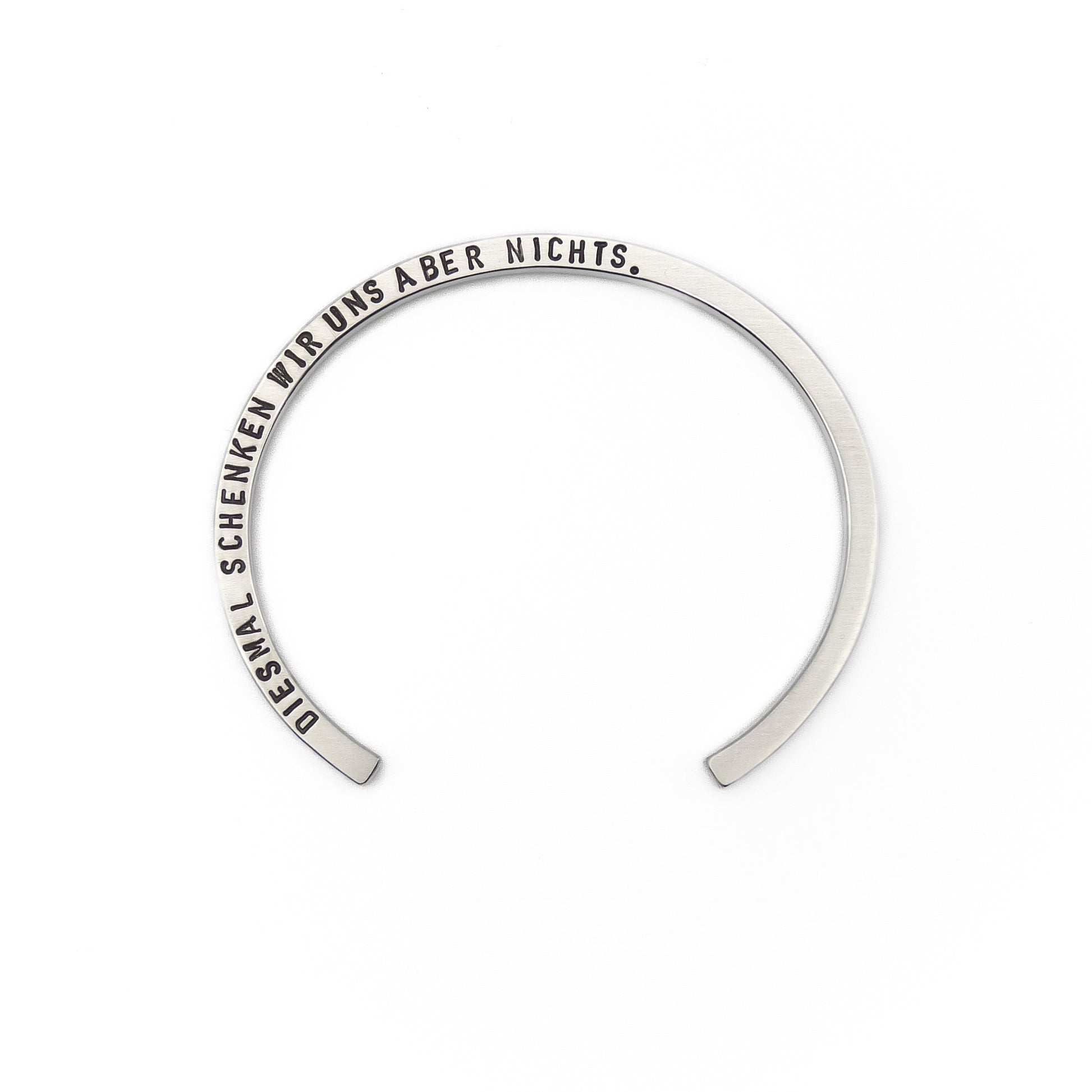 „Diesmal schenken wir uns aber nichts.“ – ironisch, ehrlich und perfekt für alle, die ihre eigenen Regeln brechen. Auf Wunsch individualisierbar mit eigener Gravur.