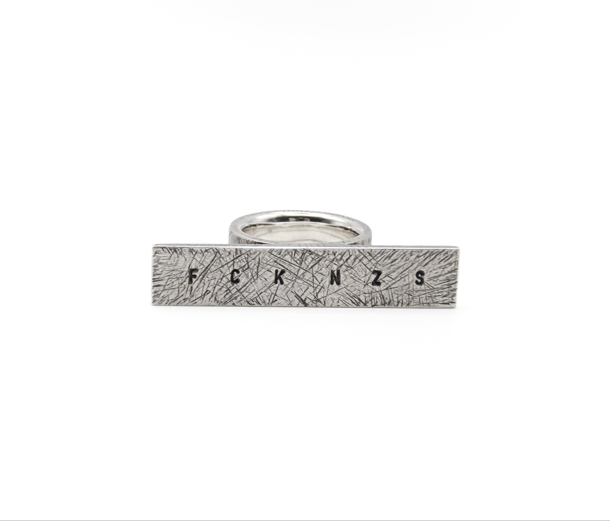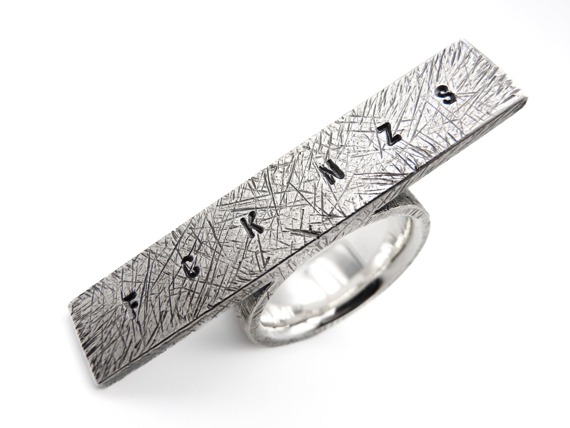 Die aufgelötete Silberplatte bietet Platz für eine Gravur oder ein gestempeltes Statement, das du individuell gestalten kannst. So wird jeder Ring zu einem persönlichen Unikat.