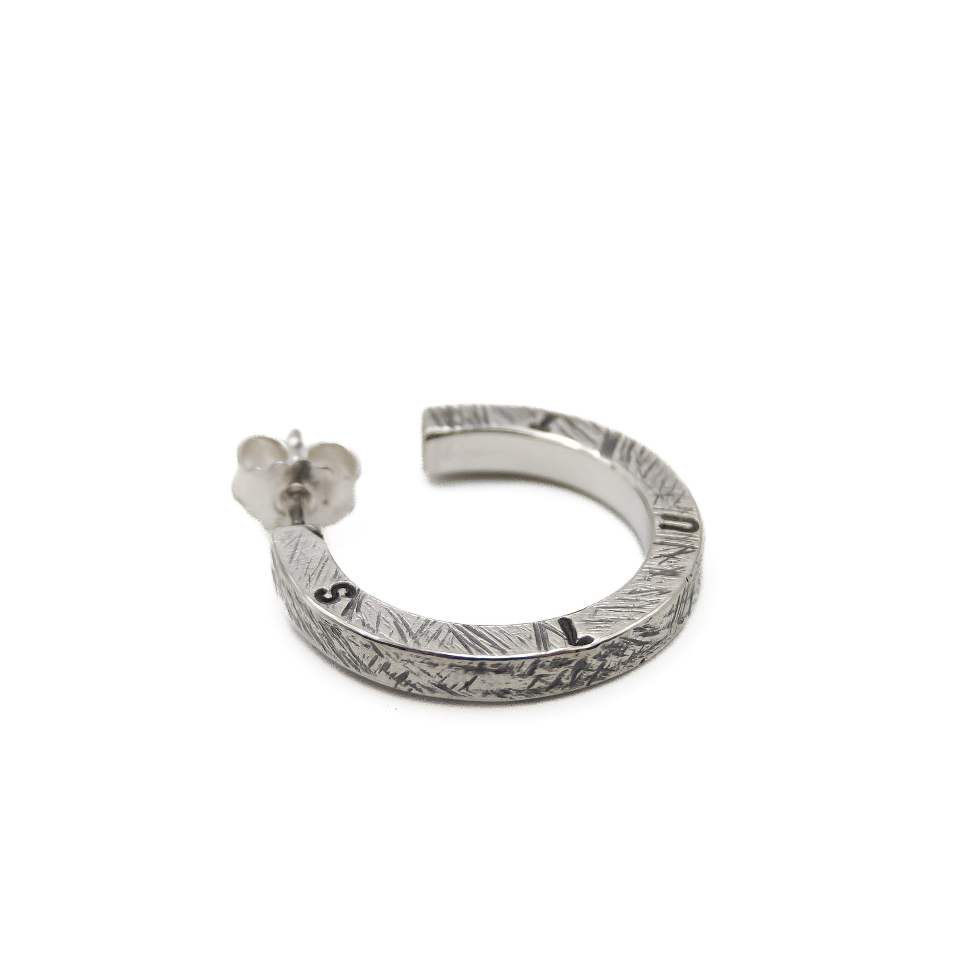 Der Stift ist beim Tragen unsichtbar, die Öffnung kaum erkennbar, sodass die Creolen geschlossen und elegant wirken. Ein minimalistisches Schmuckstück, das Stil und Persönlichkeit zeigt – handgeschmiedet aus echtem 925er Silber.